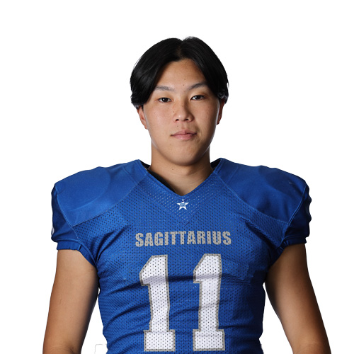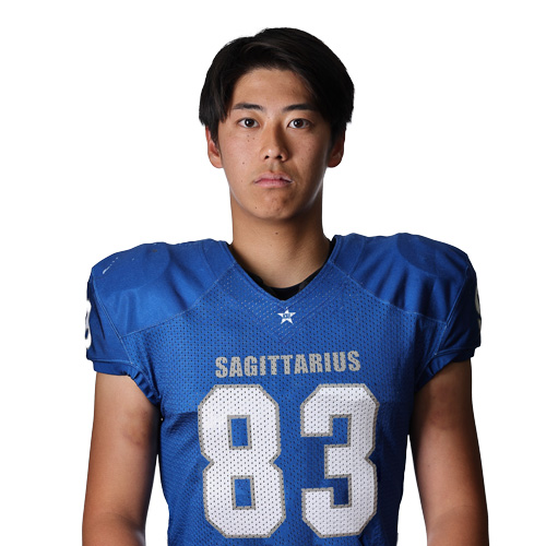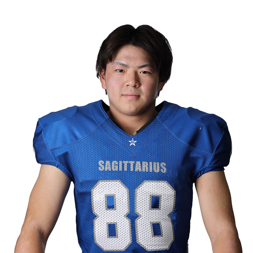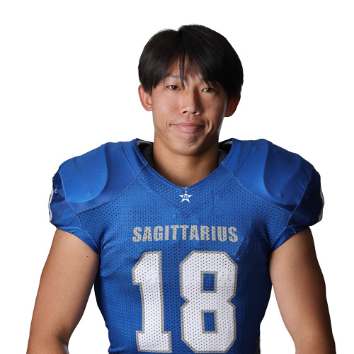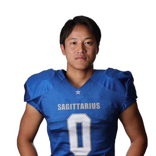 | [ポジション] [身長/体重] [学年] [学部] [出身校] [スポーツ歴] | WR 171cm/76kg 2回生 現代社会学部 箕面自由学園高校 アメフト |