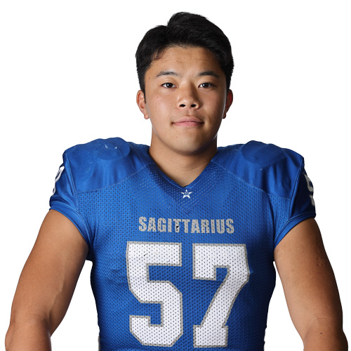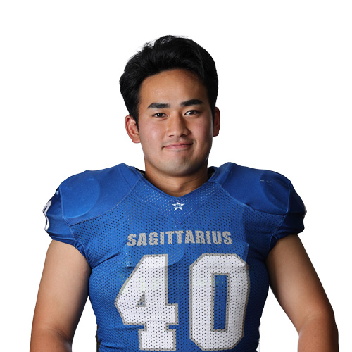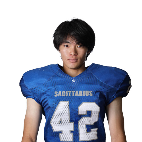 | [ポジション] [身長/体重] [学年] [学部] [出身校] [スポーツ歴] | LB 162cm/63kg 2回生 経営学部 龍谷大平安高校 アメフト |