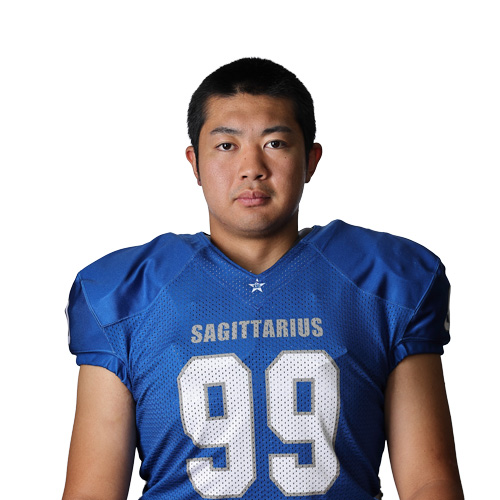 | [ポジション] [身長/体重] [学年] [学部] [出身校] [スポーツ歴] | OL 170cm/110kg 2回生 経済学部 大阪学芸高校 アメフト |